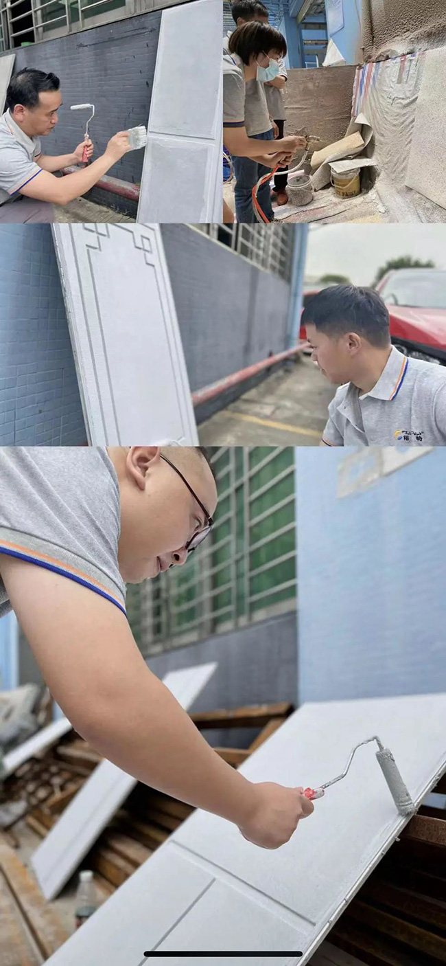 正確的實(shí)踐能讓理論更好地融會(huì)貫通。實(shí)操培訓(xùn)期間,在福萊特商學(xué)院實(shí)戰(zhàn)派專家的示范和指導(dǎo)下,進(jìn)行批刮膩?zhàn)?、勾縫、中途漆、彩點(diǎn)、罩光面漆等實(shí)操教學(xué)演練課程。通過實(shí)操教學(xué)演練,讓學(xué)員們?cè)跐夂竦膶W(xué)習(xí)氛圍中不斷成長,為迅速蛻變?yōu)橐幻麅?yōu)秀的外墻涂裝專家積蓄力量。
