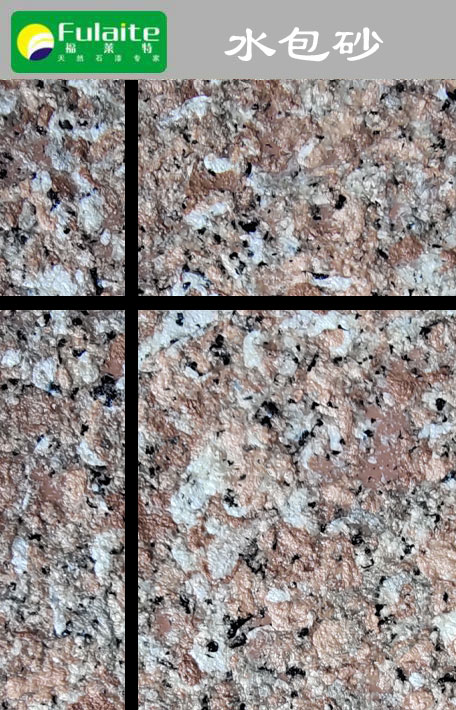 水包砂既有荔枝面的天然石頭的質(zhì)感,又有仿花崗巖的效果。而真石漆雖然有荔枝面天然石頭的質(zhì)感,但是做不到仿大理石的多彩視覺效果,而水包水多彩涂料的表面光澤,沒有荔枝面天然石頭的質(zhì)感。