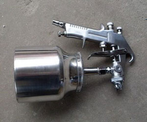 (2)下壺噴槍:容量 500ml,口徑 1.3mm 以上,容量不能太大,否則太重,操作不便,口徑小則施工速度慢,可能延緩工期,不宜大面積施工。